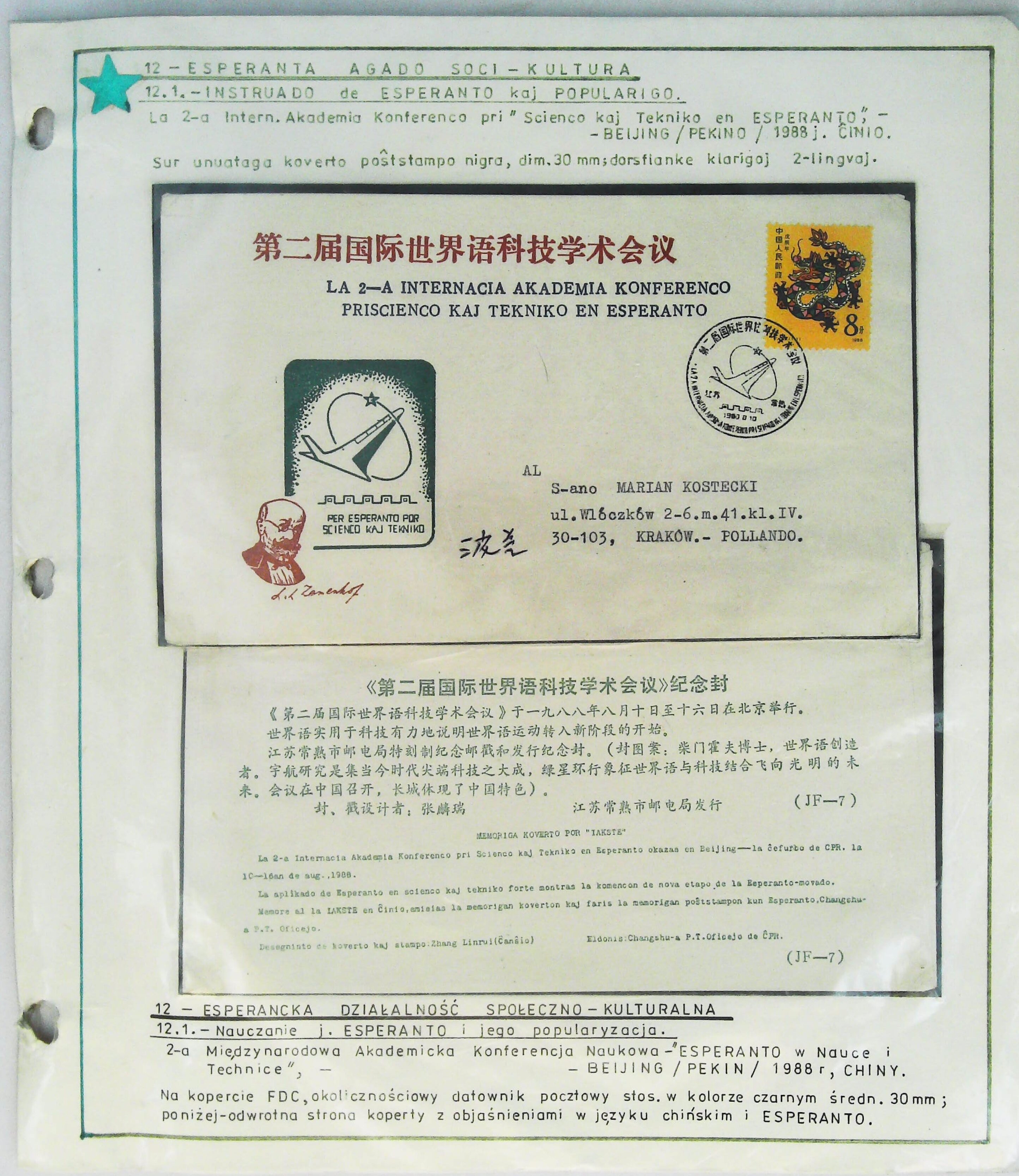 1990年第2届国际世界语科技学术会议实寄封展片