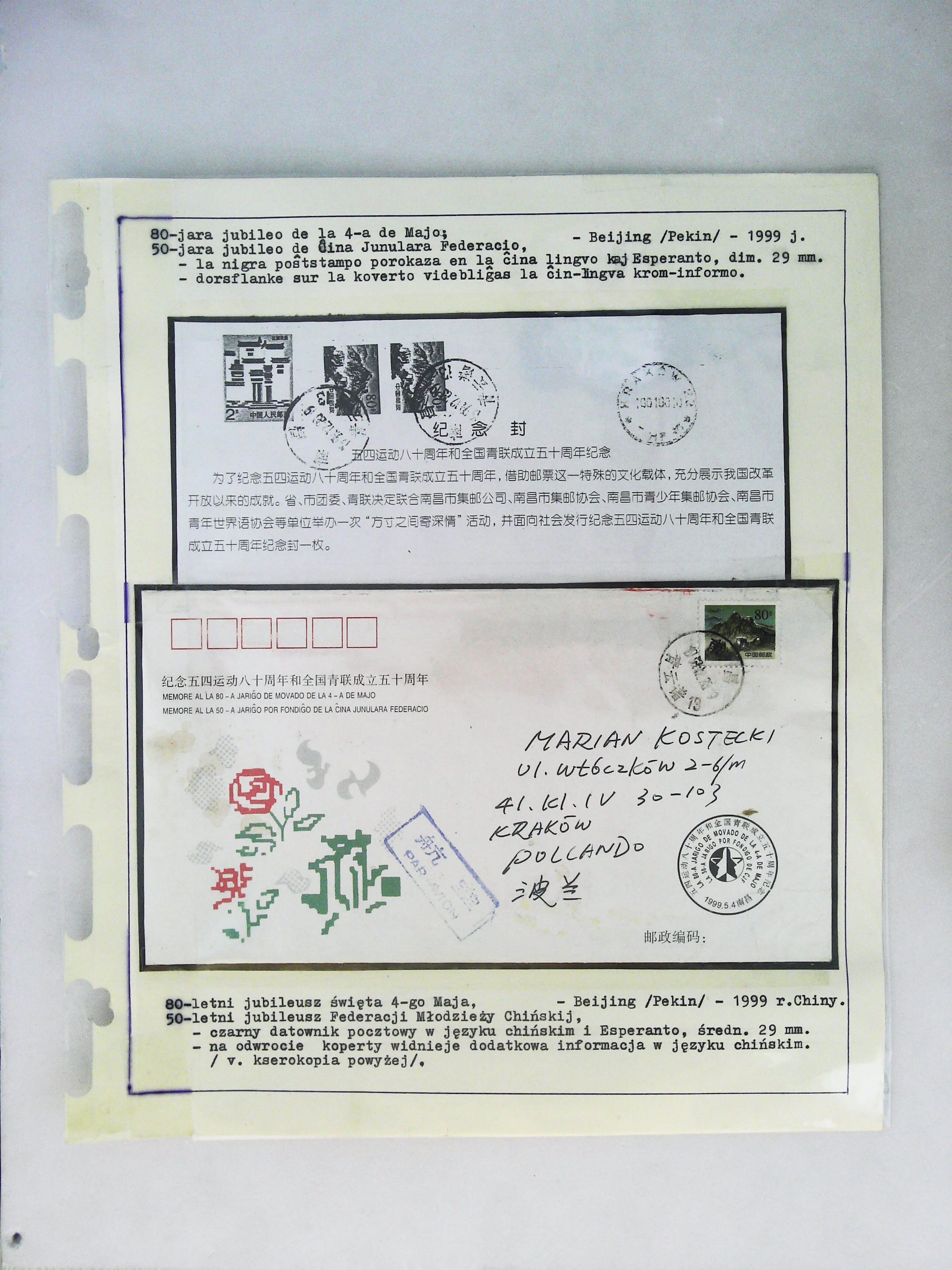 1991年沈澄如与波兰Marian Kostecki通信的实寄封展片
