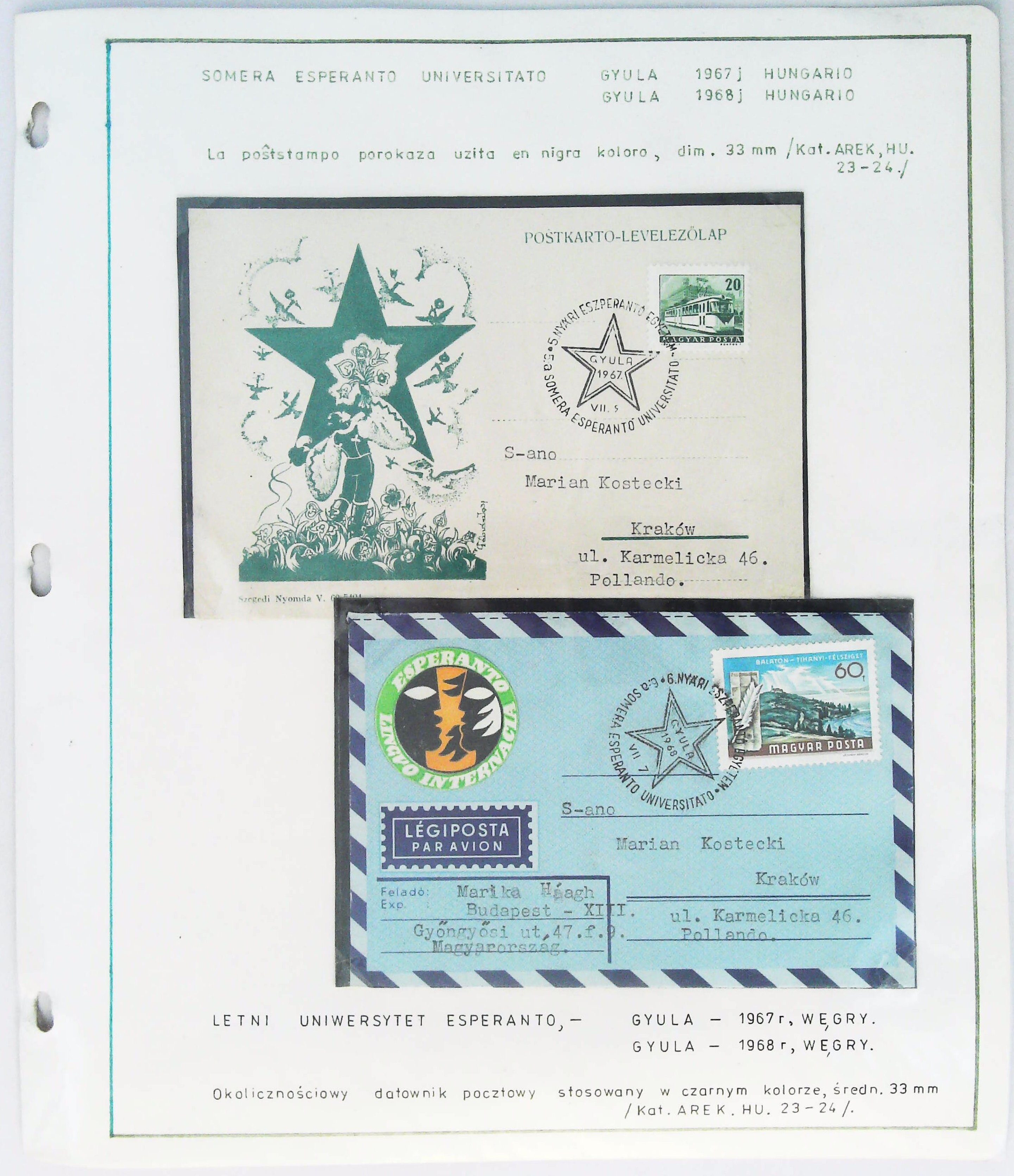 1968年匈牙利世界语暑期大学实寄明信片展片