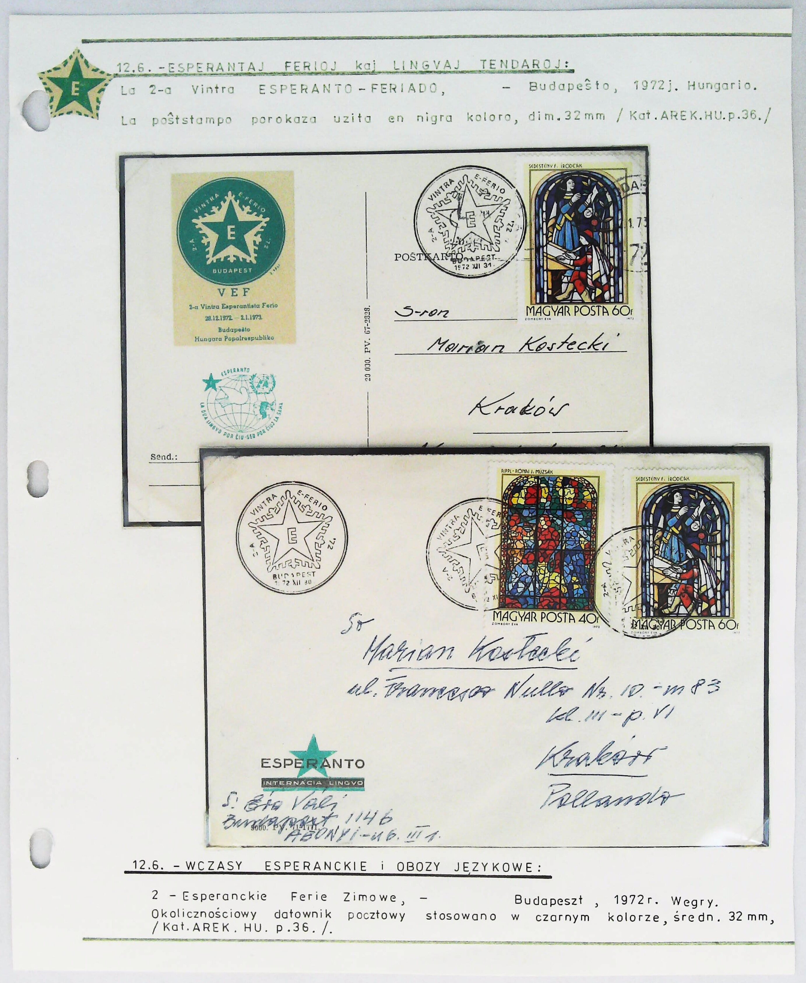 1972年匈牙利第2届世界语冬令营实寄明信片展片