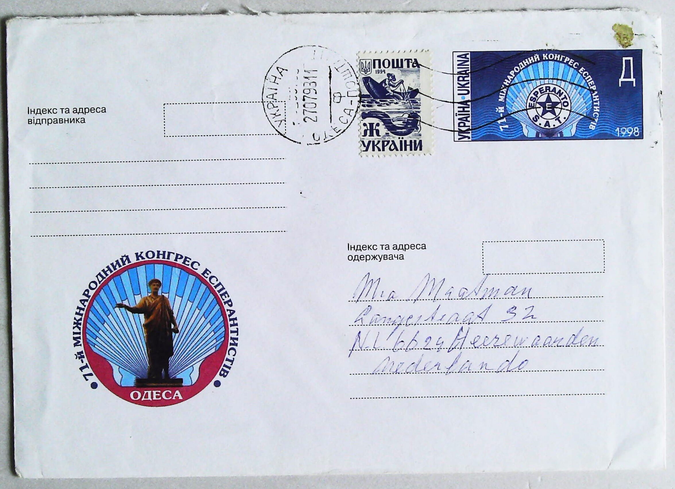 1998年乌克兰第71届全世界超民族协会世界语大会实寄封