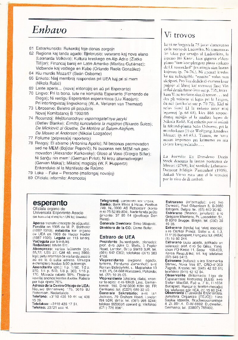 1992年《ESPERANTO》第4期(总第1036期)
