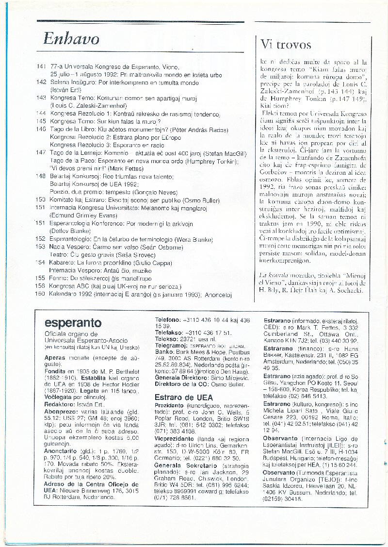 1992年《ESPERANTO》第7-8期(总第1039期)