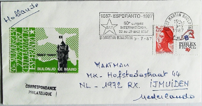 1987年布伦第60届法国世界语大会实寄封