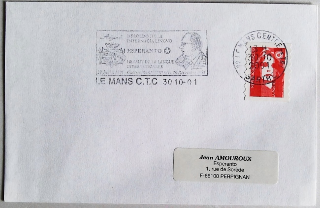 2001年法国世界语周报纪念戳(载体实寄封)