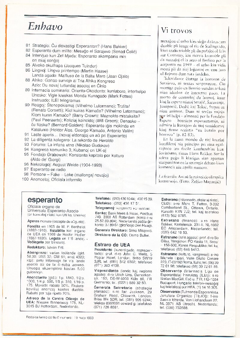 1993年《esperanto》第2期(总第1045期)