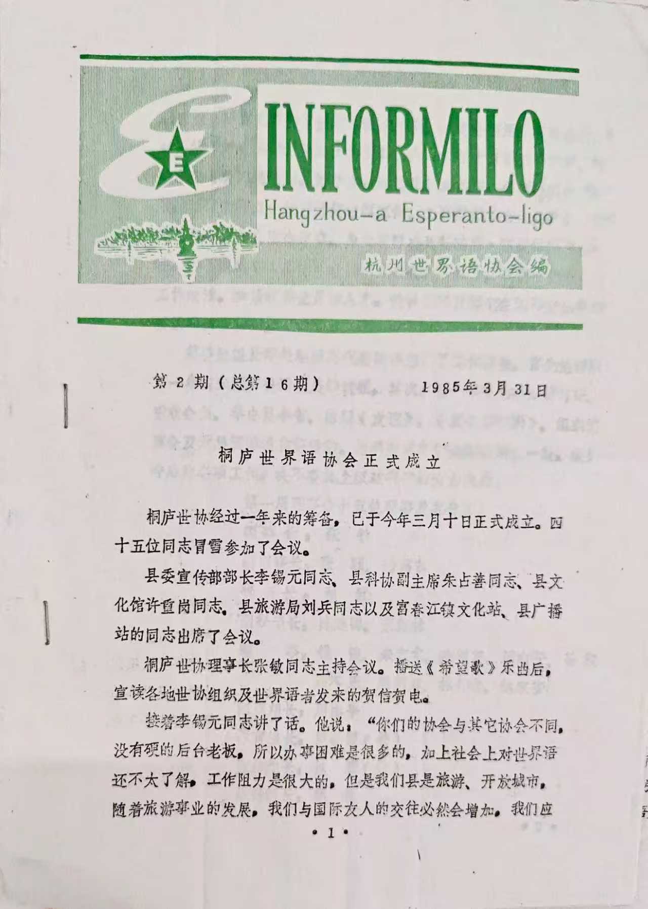 1985年3月5日《Informilo》第15期