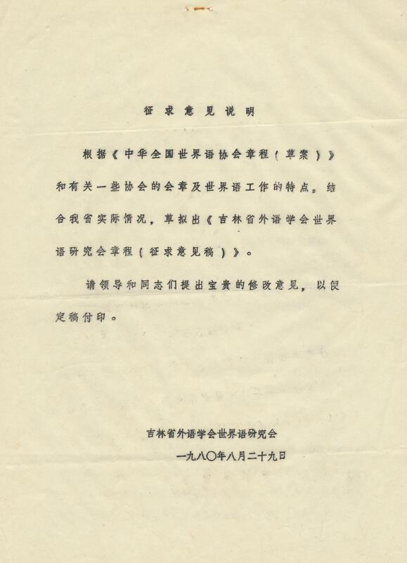 1980年8月29日吉林省外语学会世界语研究会章程(征求意见稿)