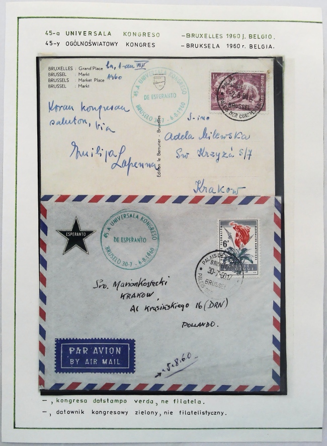 1960年布鲁塞尔第45届国际世界语大会实寄封展片