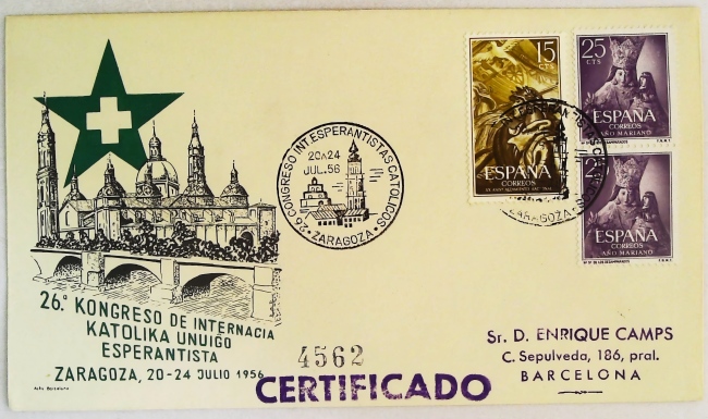 1956年西班牙国际天主教世界语协会第26届大会纪念封