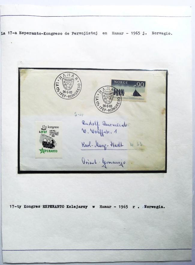 1965年哈马尔第17届国际铁路员工世界语大会实寄封展片