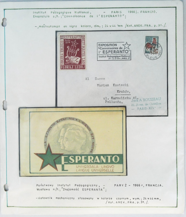 1966年巴黎世界语展览会实寄封展片