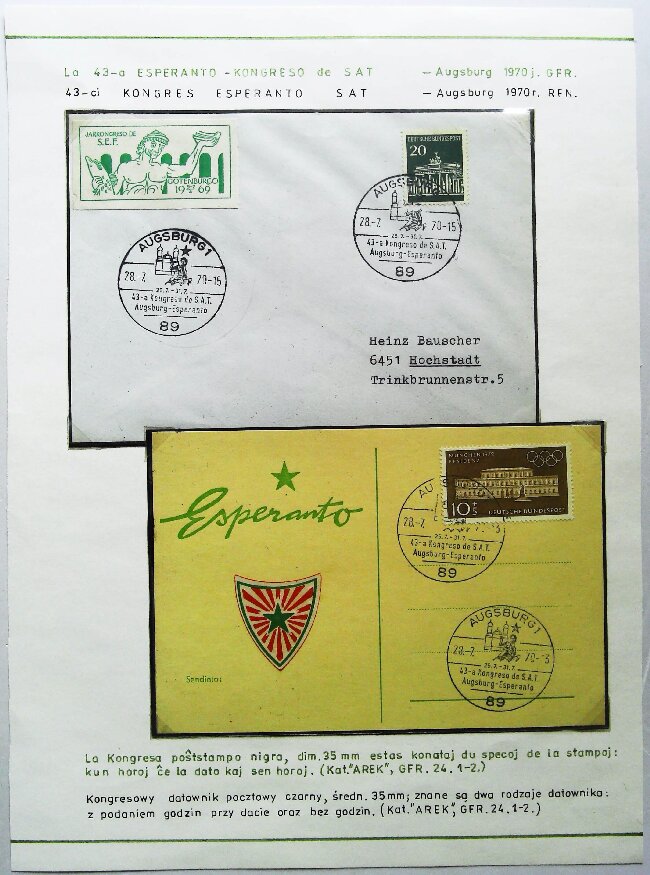 1970年达姆施塔特第14届德国铁路员工世界语大会实寄封展片