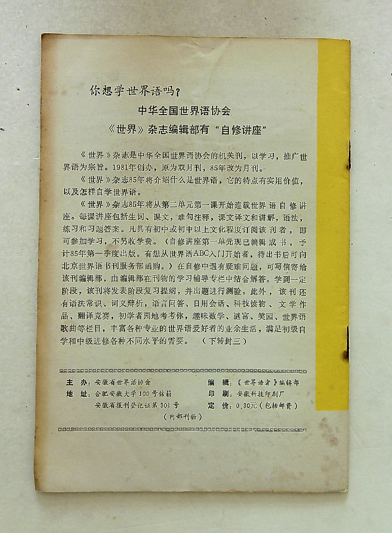 1984年《世界语学习》第8期