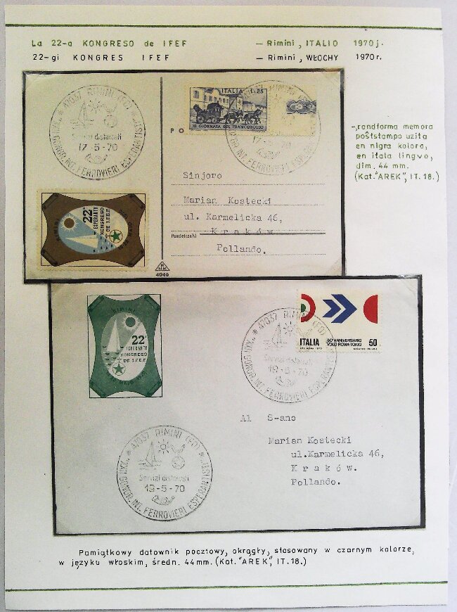 1970年里米尼第22届国际铁路员工世界语大会纪念封展片