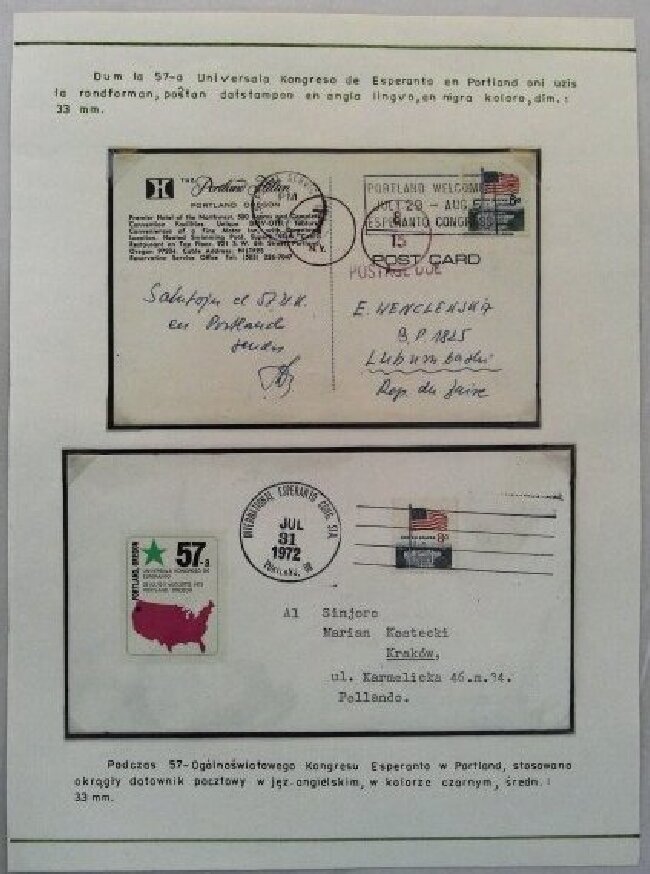 1972年波特兰第57届国际世界语大会实寄纪念封展片