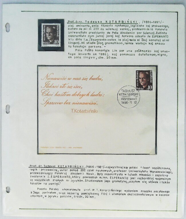 1986年塔德乌神·科塔尔宾斯基纪念封展片