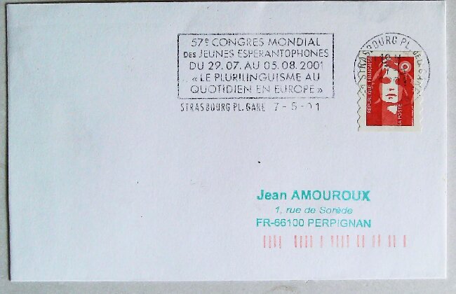 2001年第57届国际青年世界语大会实寄封