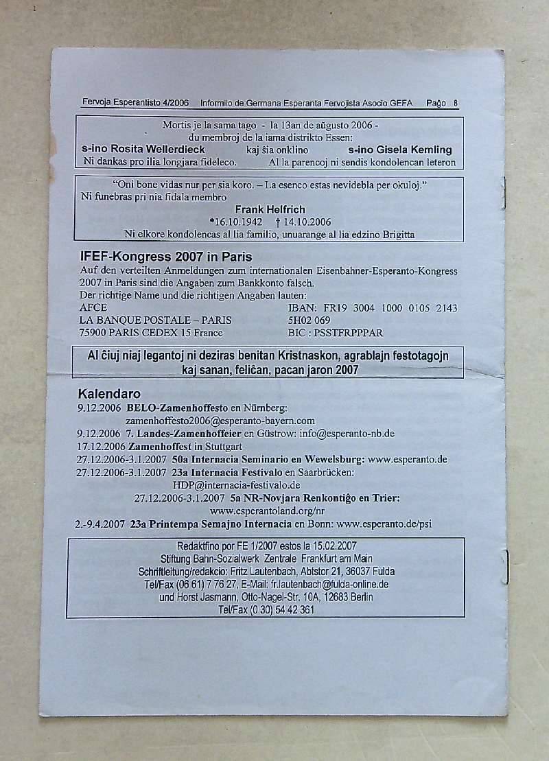 2006年《FERVOJA ESPERANTISTO》第4期