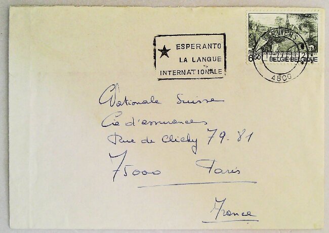 1971年比利时世界语纪念戳(载体信封)
