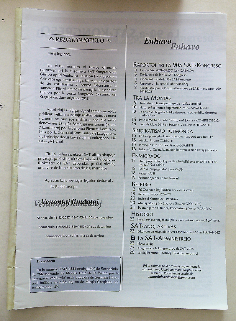 2018年《Sennaciulo》第11-12期(总1361-1362期)
