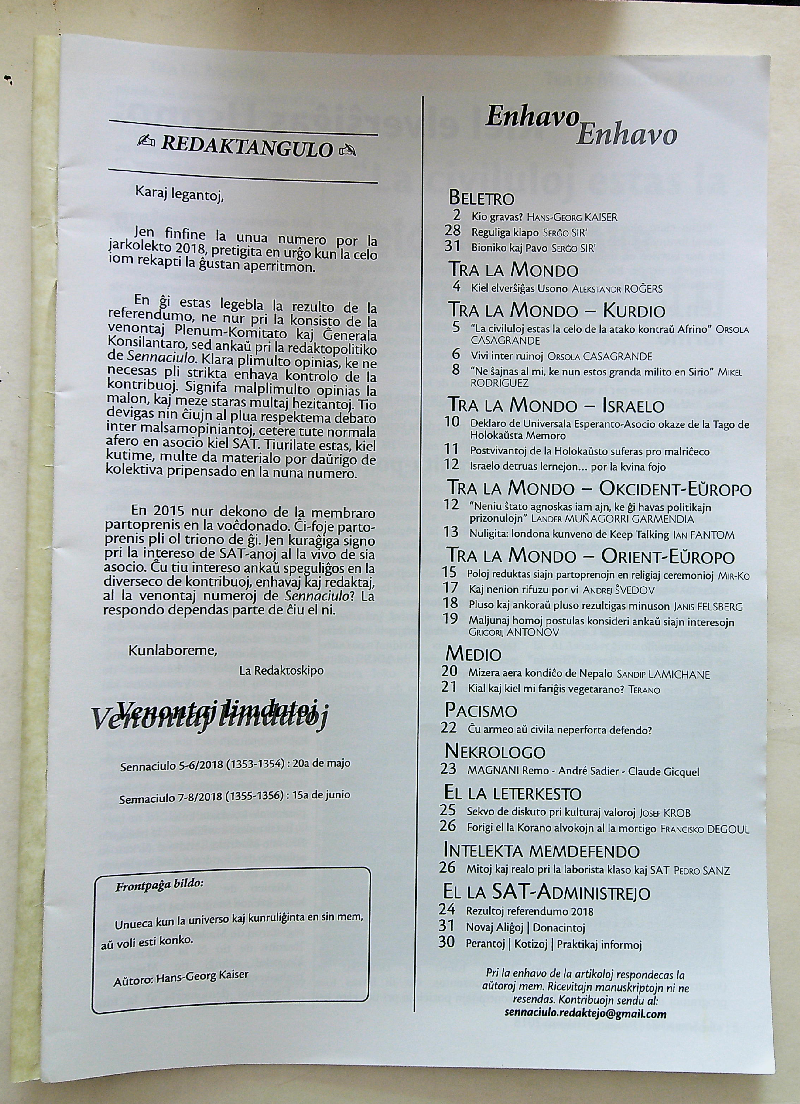 2018年《Sennaciulo》第3-4期(总1353-1354期)