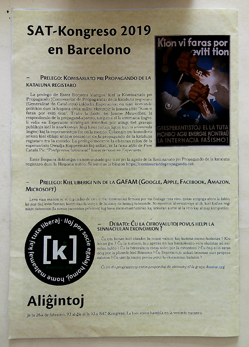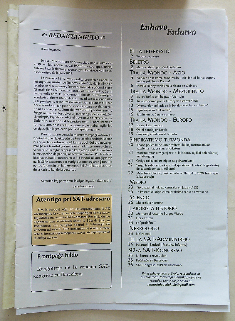 2019年《Sennaciulo》第1-2期(总1363-1364期)