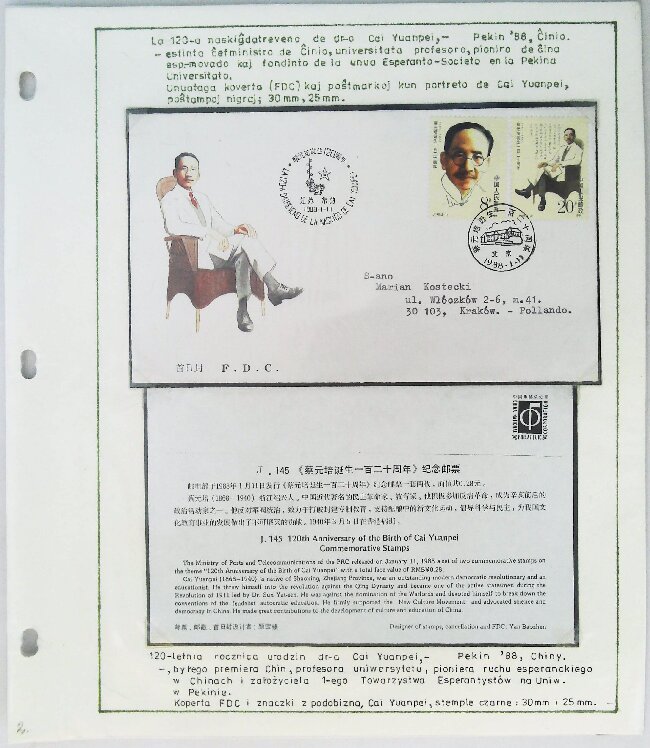 1988年中华全国世界语协会寄给荷兰世界语者的实寄封