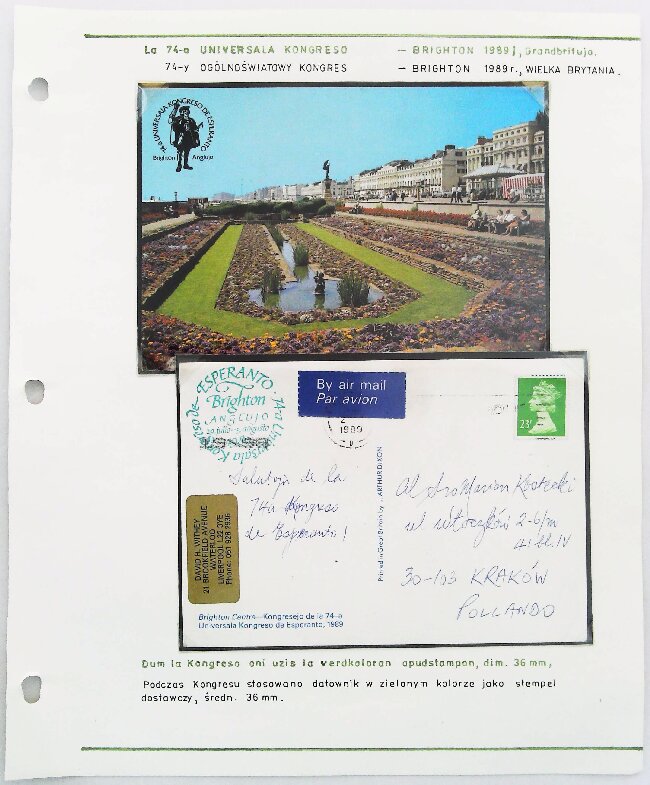 1989年布莱顿第74届国际世界语大会实寄明信片展片