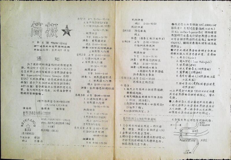 1980年重庆世界语协会简报(第四期)
