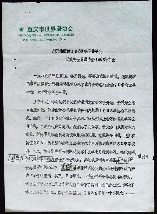 1989年《别开生面的1988年工作年会——记重庆世界语协会1988年年会(附简讯)》