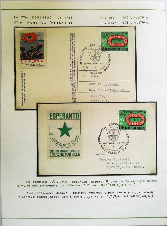 1975年奥地利第27届国际铁路员工世界语大会明信片展片