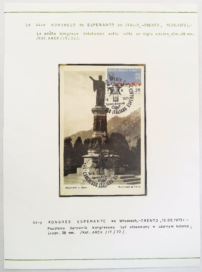 1973年特伦托第44届意大利世界语大会实寄明信片展片