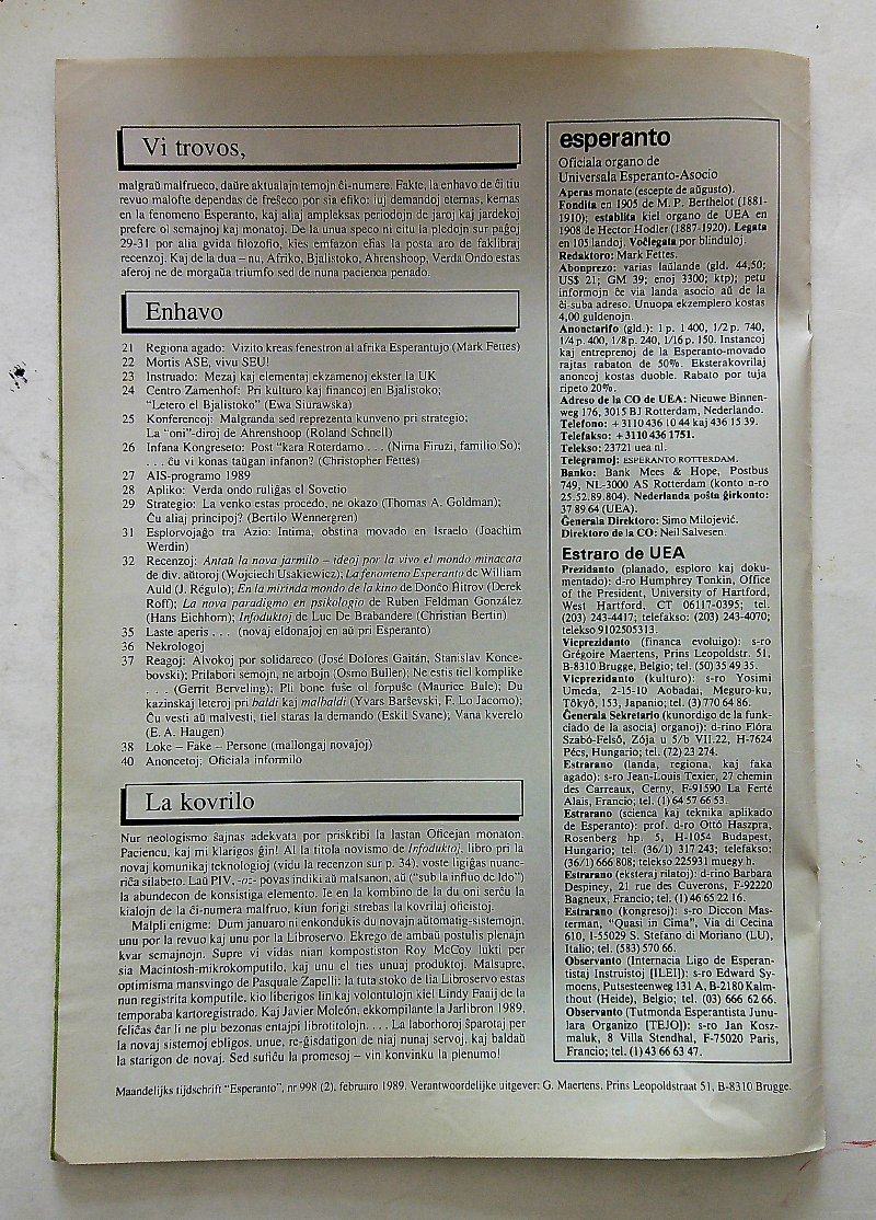 1989年《esperanto》第998期