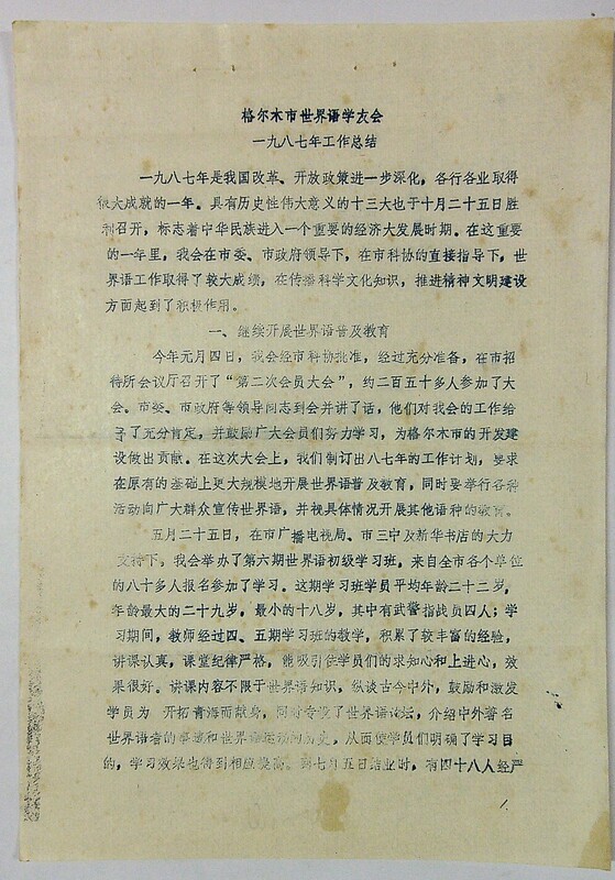 1987年格尔木市世界语学友会工作总结