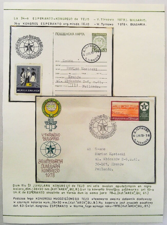 1978年瓦尔纳第63届国际世界语大会实寄明信片展片