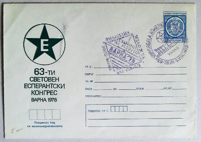 1978年瓦尔纳第63届国际世界语大会纪念封