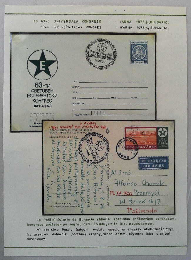 1978年瓦尔纳第63届国际世界语大会实寄明信片展片