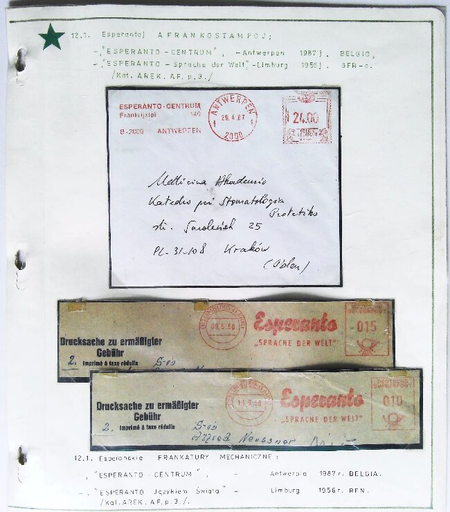1956年比利时和德国世界语邮戳(载体实寄封)展片