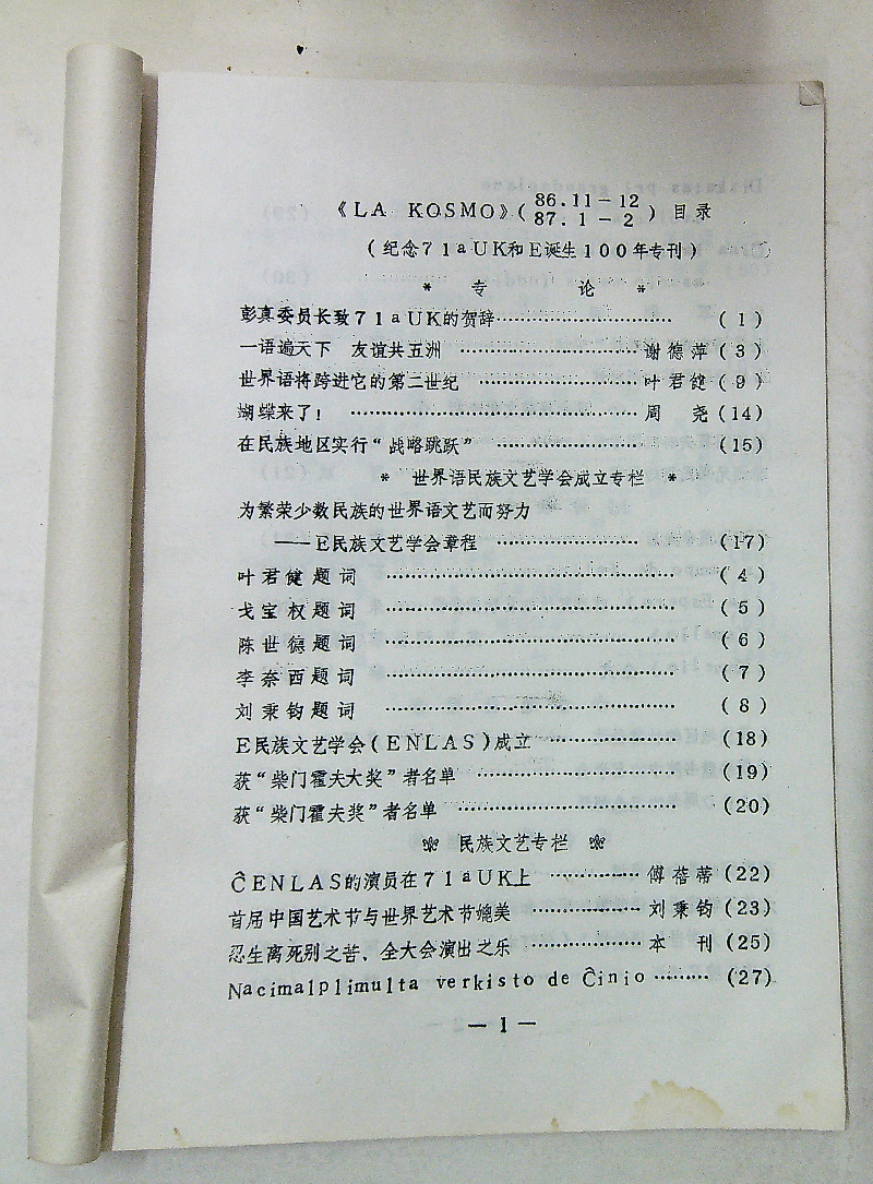 捐赠人:包头市世界语协会
