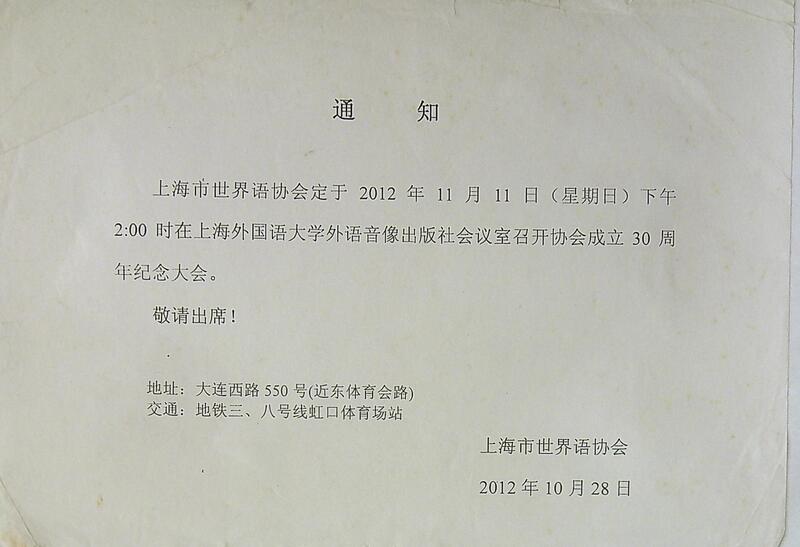2012年上海世界语协会会议通知