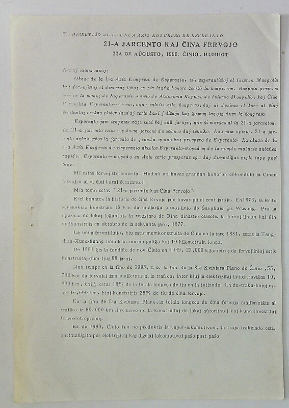 1996年第一届亚洲世界语大会组织委员会领导班子及大会进程