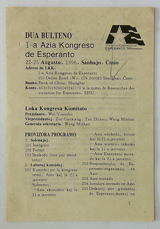 1996年第一届亚洲世界语大会组织委员会领导班子及大会进程