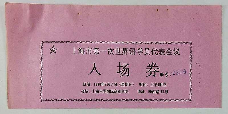 1988年上海市第一届世界语学员代表会议入场券