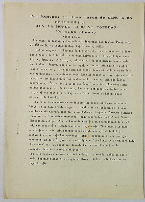 1988年华东师范大学《中国大学世界语运动的前景展望》