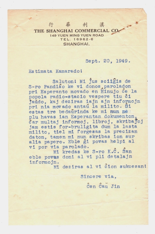 1949年陈兆瑛致某人的一封信