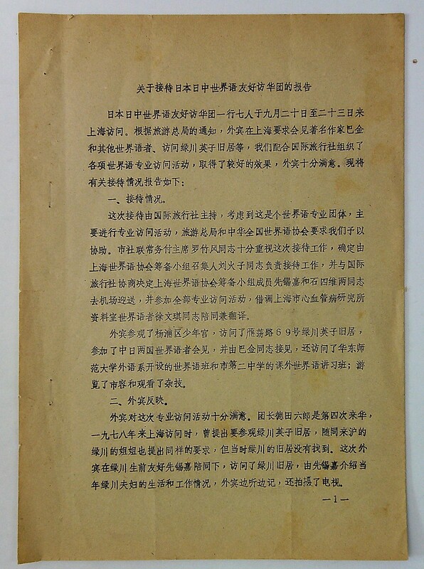 1981年《关于接待日本世界语者酒枝颂子的情况》