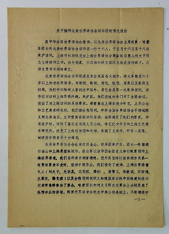 1981年《关于接待北美世界语协会访华团的情况报告》