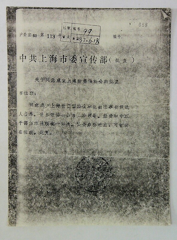 1982年中共上海市委宣传部《关于同意成立上海世界语协会的批复》